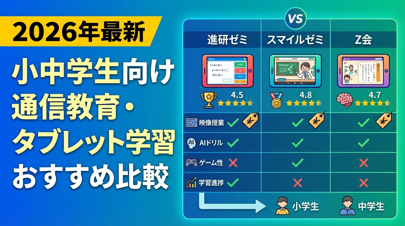 【2026年最新】小中学生向け通信教育・タブレット学習おすすめ比較|進研ゼミ・スマイルゼミ・Z会の違いと選び方