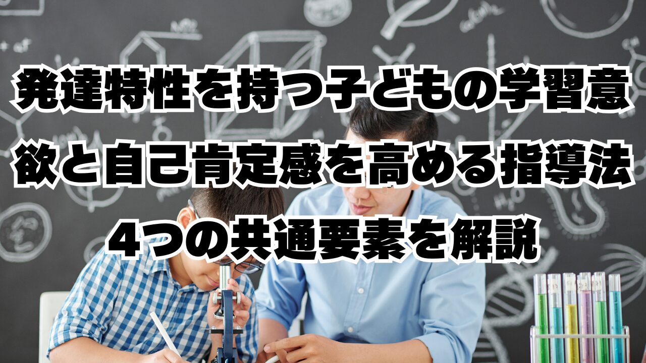この記事では、ASD、ADHD、LDなど発達特性を持つ子どもの学習意欲と自己肯定感を向上させる指導の共通要素について解説しました: