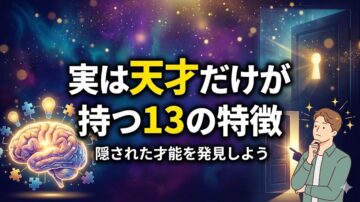 「天才」と聞くと、特別な才能を持った人々を想像しがちです。しかし、一見欠点に見える行動の中に、実は天才的な特徴が隠されているかもしれません。まずは30秒で自己診断してみましょう。 このビデオ(動画はこちら)では、一見欠点とも思える行動の中に潜む、天才だけが持つかもしれない13の特徴を紹介しています。 以下では、13の特徴を詳しく解説します。 日常に潜む?天才の13の特徴 以下に、ビデオで紹介された…