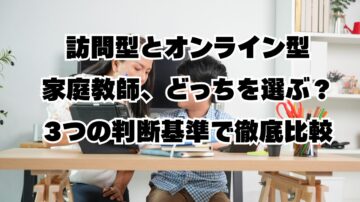 訪問型とオンライン型家庭教師、どっちを選ぶ?3つの判断基準で徹底比較 「家庭教師を頼みたいけれど、訪問型とオンライン型、どっちがうちの子に合っているんだろう…?」 そんな悩みを抱えていませんか? この記事では、訪問型とオンライン型の家庭教師サービスを選択する際の判断基準について、お子様の特性・地理的制約・費用の3つの観点から詳しく解説します。 💡 家庭教師選びは「靴選び」と同じ 家…