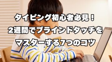 タイピング初心者必見!2週間でブラインドタッチをマスターする7つのコツ なぜタイピングが上達しないのか?多くの人が抱える悩み 「キーボードをどうしても見てしまう」「タイピングが遅くて仕事が進まない」「ブラインドタッチ(タッチタイピング)をマスターしたいけど、どう練習すればいいかわからない」――こうした悩みを抱えている方は非常に多いのではないでしょうか。 特に最近では、テレワークやオンライン授業の普…