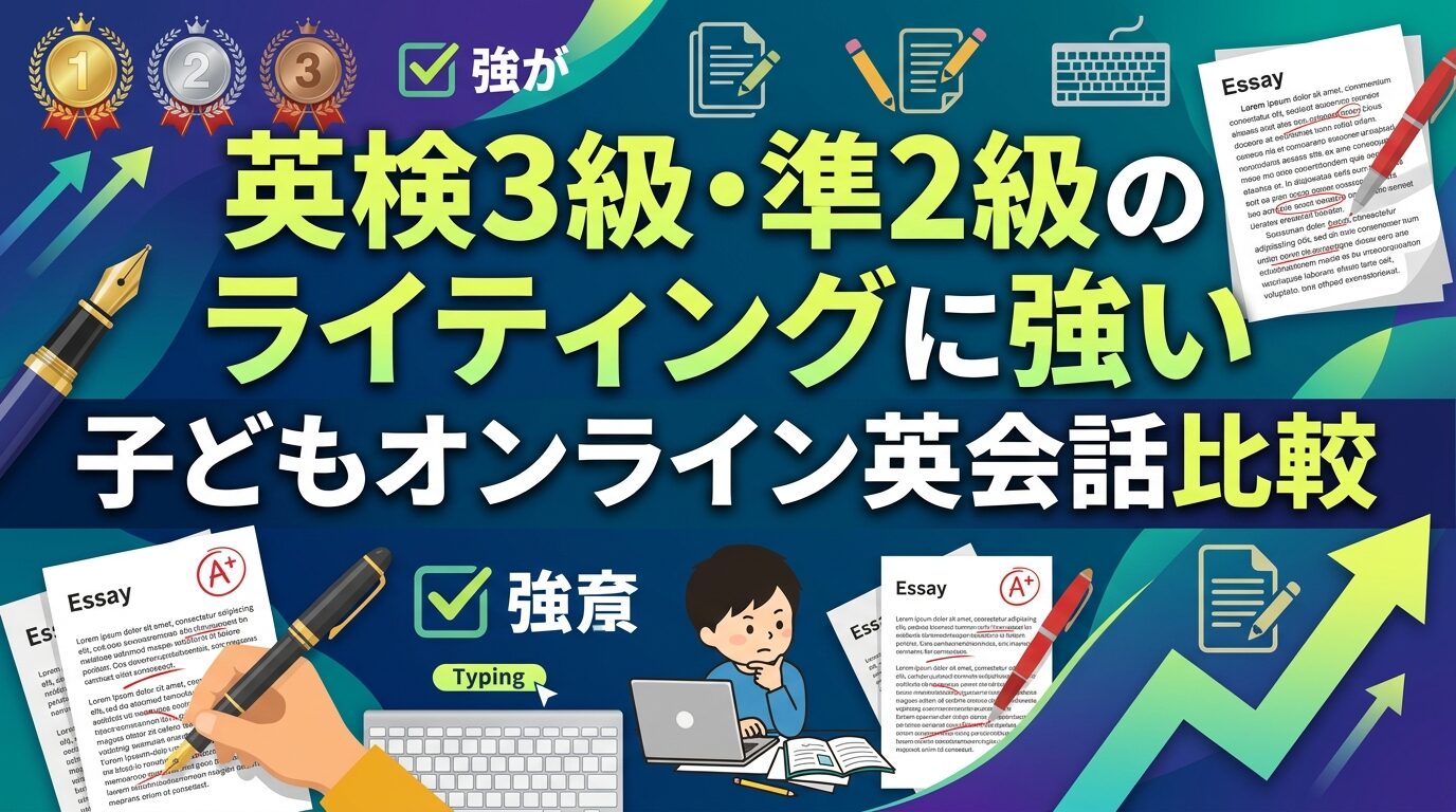 本記事では、英検3級・準2級のライティング対策に向く、添削・宿題サポート付きの子ども向けオンライン英会話の選び方と比較ポイントをわかりやすく解説します。(専門知識は不要です!)