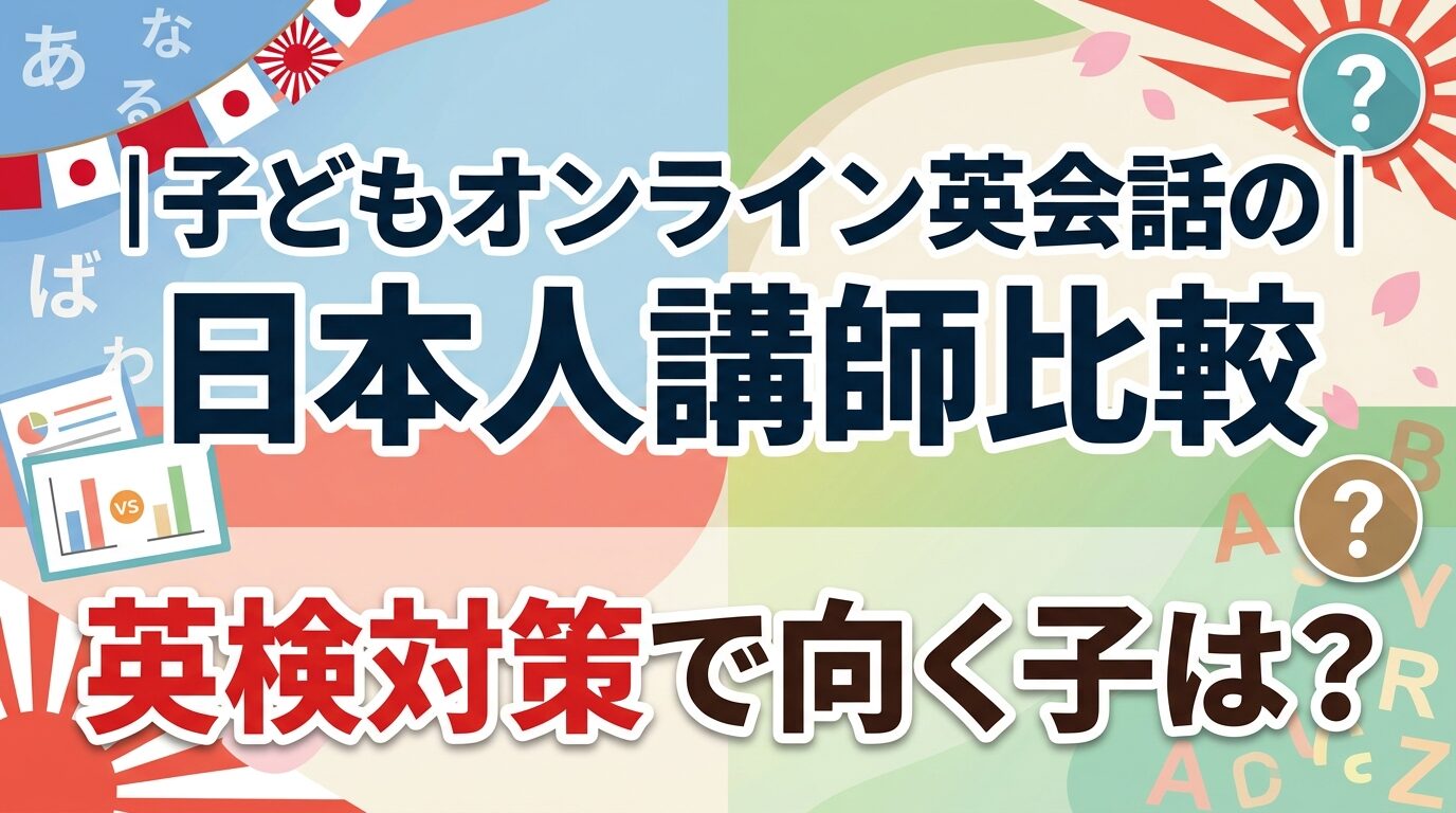本記事では、子ども向けオンライン英会話の日本人講師・バイリンガル講師選びについて、英検の級別に向くケースとサービス比較をわかりやすく解説します。(専門知識は不要です!)