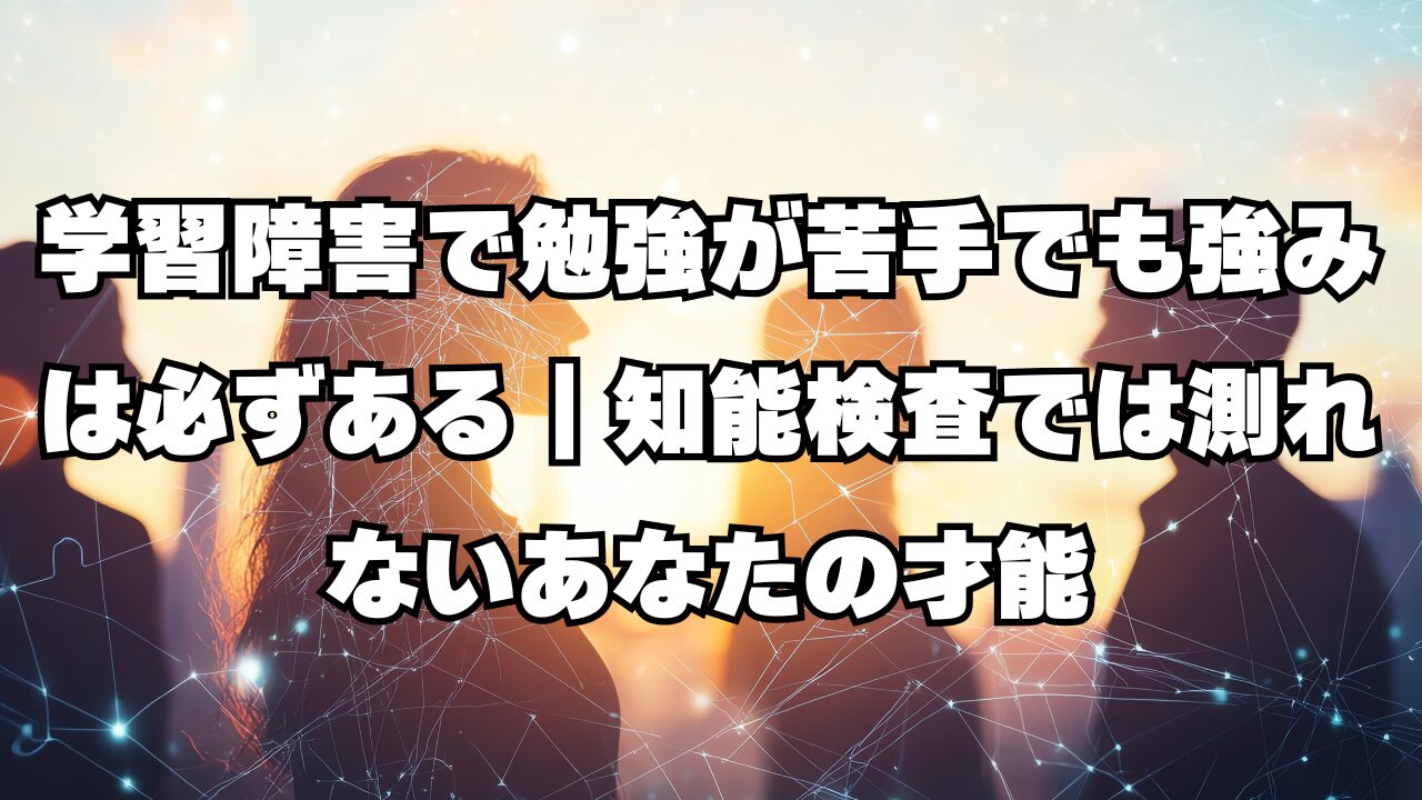 この記事では、学習障害があり、学校の勉強が苦手な方へ向けて、知能検査では測れない強みについて解説しました:
