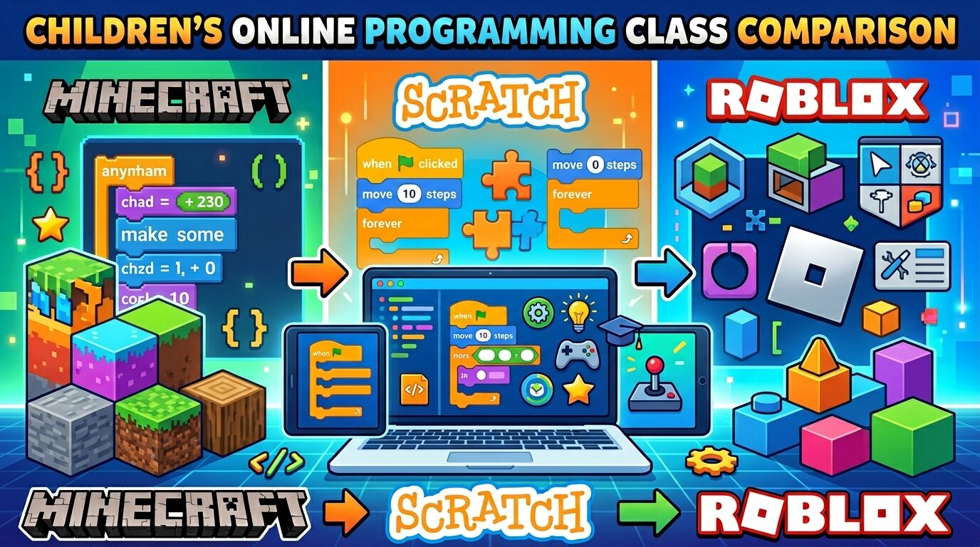 本記事では、子ども向けオンラインプログラミング教室をマイクラ・Scratch・Robloxで比較する考え方を、年齢・興味・PCスキル・次の学習段階という4つの軸からわかりやすく整理します。(専門知識は不要です!)