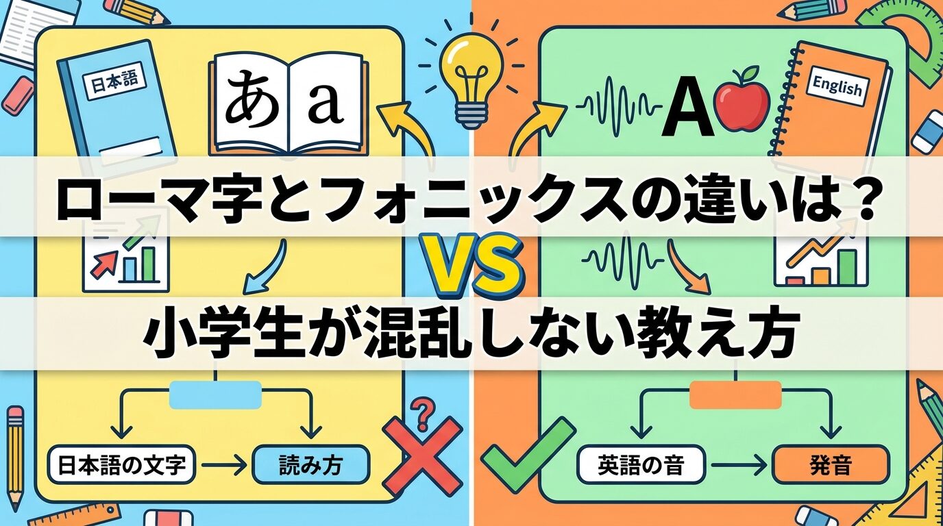 本記事では、ローマ字とフォニックスの違いと、小学生が混乱しやすい理由、家庭での説明のしかたをわかりやすく解説します。(専門知識は不要です!)