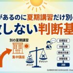 夏期講習選びでいちばん大切なのは、早く動くことそのものではなく、自分の家庭に必要な条件を早めに把握することです。受付開始・締切・日程の組み方を分けて見るだけでも、迷いはかなり減らせます。