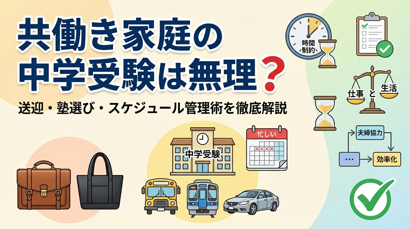 この記事では、共働き家庭が中学受験で直面する現実的な課題と、それを乗り越えるための送迎問題の解決策、共働きに合った塾の選び方、スケジュール管理術、食事・生活リズムの効率化まで、実践的な方法を網羅的に解説します。